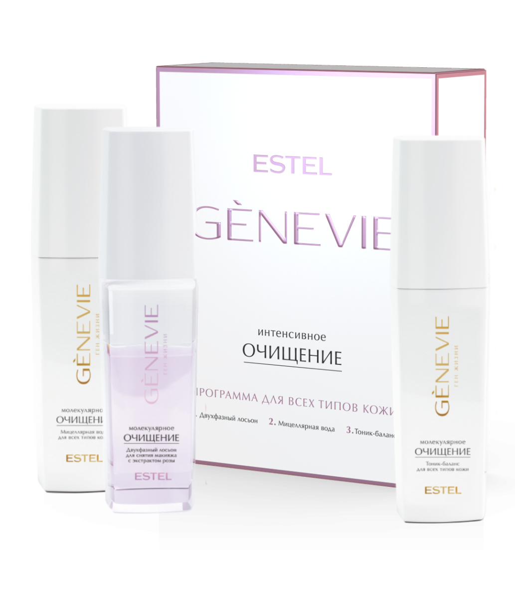 Программа "Интенсивное очищение" для всех типов кожи Молекулярное очищение GC/SET2/3В состав набора входят:Двухфазный лосьон для снятия макияжа с экстрактом розы «Молекулярное очищение»Мицеллярная вода для всех типов кожи «Молекулярное очищение» GENEVIEТоник-баланс для всех типов кожи «Молекулярное очищение» GENEVIE Скачать каталог